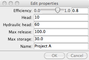 Throughout this tutorial, we will use an example based on a water resource management simple case. We will try to model a dam and reservoir system. The reservoir and the dams do have a set of parameters :